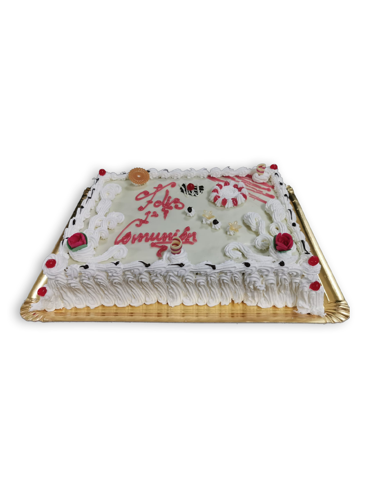 Personalizadas en colores, formas y detalles decorativos, pueden incluir figuras, símbolos religiosos, nombres o mensajes especiales. Su presentación cuidada y su sabor casero hacen de estas tartas el broche perfecto para una comunión inolvidable, donde cada detalle cuenta y cada porción se disfruta con emoción.